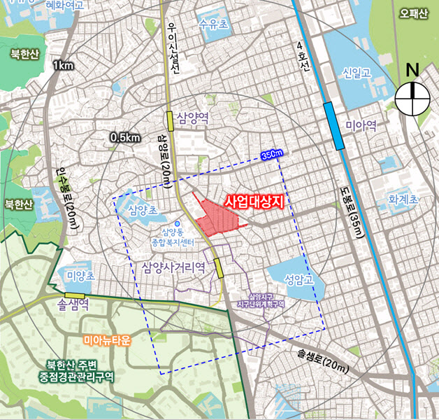 이 사업은 서울특별시 강북구 미아동 754번지 일대 총 17,716㎡ 부지에 지하 4층~지상 38층, 630세대 규모의 아파트 단지를 조성하는 도시정비형 재개발사업으로, 우이신설선 삼양사거리역을 도보로 이용할 수 있는 우수한 역세권 입지를 자랑한다.