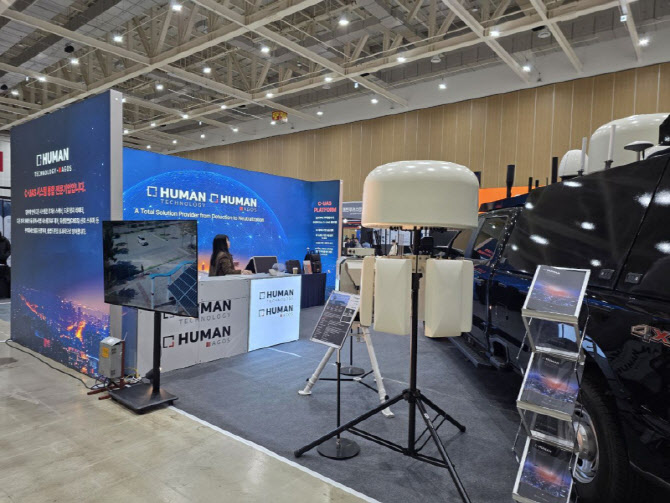 휴먼아고스는 자체 부스를 운영하며 △RF 스캐너 △GNSS 스푸퍼 △C2 소프트웨어 △RF 재머 △EO·IR 카메라 △기동형(차량) 시스템 등 기존 주력 안티드론 장비 및 솔루션을 선보였다. 특히, 이번 박람회에선 △휴대형 스푸퍼 △백팩형 재머 등 현재 개발 중인 신제품도 대중들에게 처음으로 공개했다.