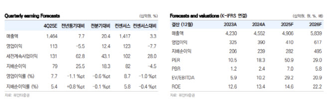 또 “2026년 연결 매출은 전년 대비 19.0% 증가한 5조 8393억원, 영업이익은 50.6% 증가한 6174억원(OPM 10.6%)으로 두 자릿수 영업이익률이 가능할 전망”이라고 분석했다.