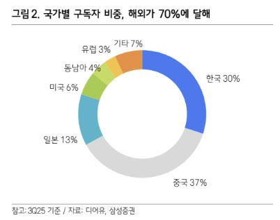지난해 3분기 기준 디어유 국가별 구독자 비중. (사진, 자료=디어유, 삼성증권)