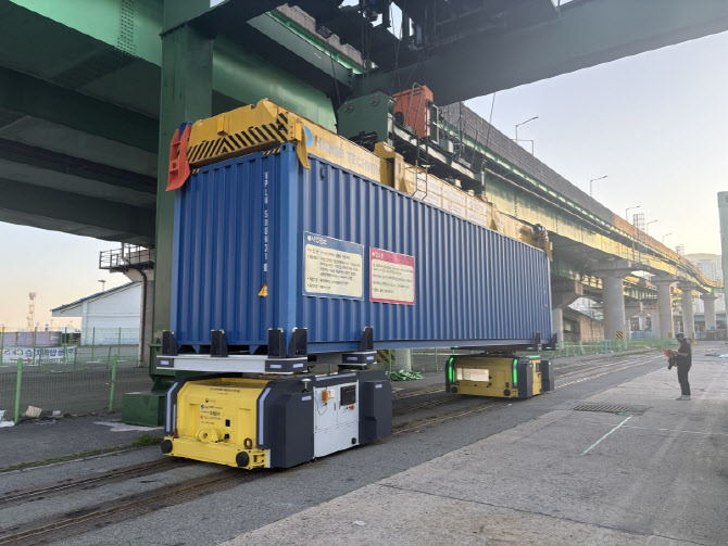 컨테이너 이송 실증 사진. (사진=시스콘로보틱스)