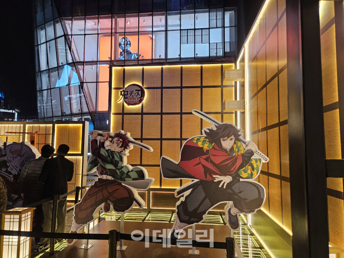 중국 베이징 번화가 싼리툰에 ‘귀멸의 칼날’ 팝업이 전시돼있다. (사진=이데일리 이명철 특파원)