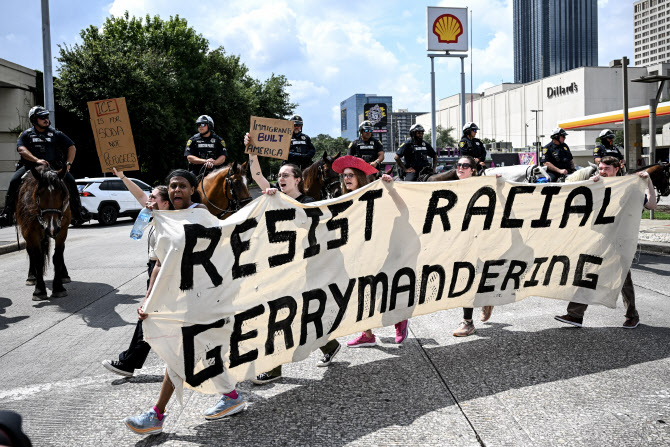 지난 9월 텍사스 휴스턴에서 시위자들이 ‘인종적 게리멘더링에 대한 저항’을 주장하고 있다. (사진=AFP)