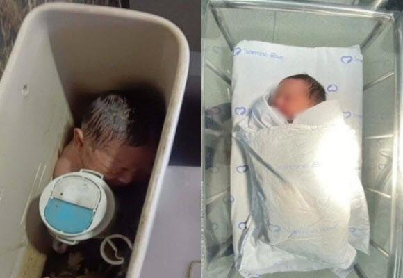당시 청소 직원이 화장실에서 들리는 아기 울음소리에 변기 물탱크 뚜껑을 열었고, 물이 절반가량 찬 수조 안에는 갓난아기가 움츠린 채 울고 있었다.