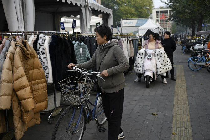 중국 베이징의 거리에서 시민이 상품을 살펴보고 있다. (사진=AFP)