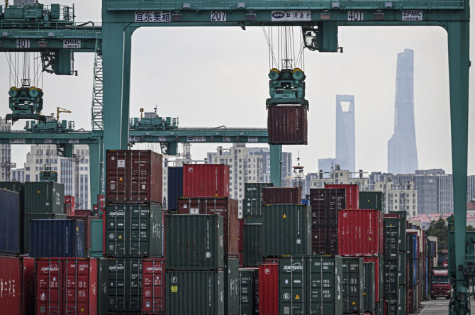 중국 상하이의 한 컨테이너 터미널에서 수출용 컨테이너가 옮겨지고 있다. (사진=AFP)
