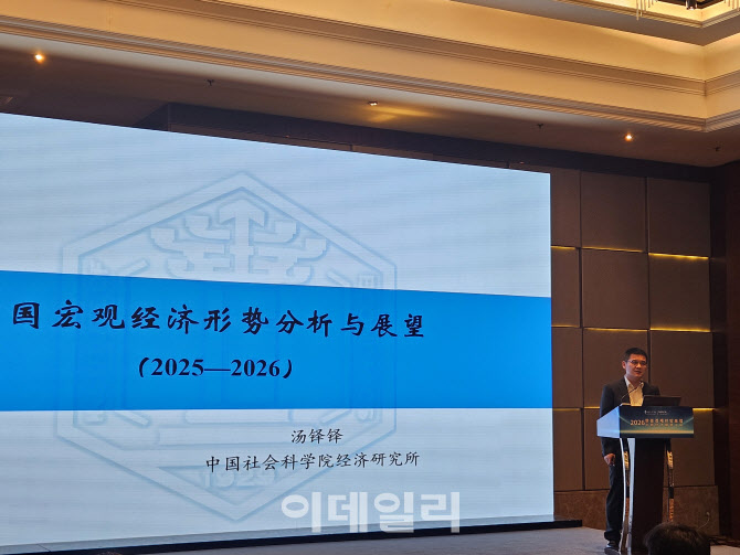 탕둬둬 중국 사회과학연구원 거시경제연구소 주임이 10일 베이징 켐핀스키 호텔에서 강연하고 있다. (사진=이데일리 이명철 특파원)