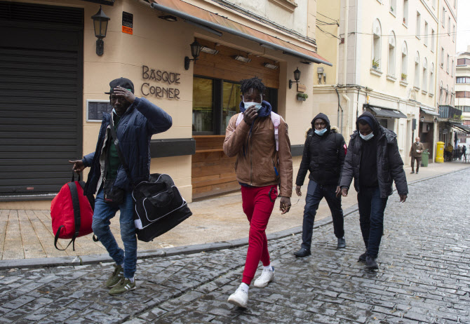 스페인 바스크 지방의 이룬시에서 이민자들이 거리를 걷고 있는 모습. (사진=AFP)