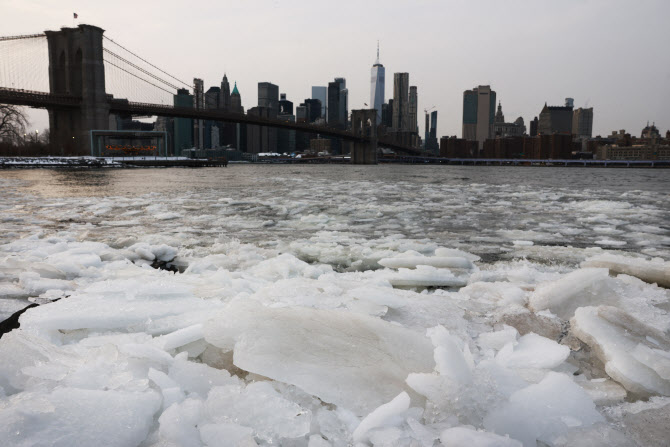 27일(현지시간) 미국 뉴욕 브루클린 이스트리버가 얼어붙은 모습. (사진=AFP)