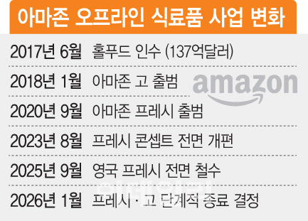 이는 약 20년 가까이 도전해온 식료품 시장 확대 전략의 또 다른 방향 전환이다. 아마존은 2017년 137억 달러(약 20조원)를 들여 홀푸드를 인수하며 오프라인 시장에 뛰어들었고 2020년 프레시 매장을 출범시켰다. 그러나 지난해 영국 매장을 모두 철수했고 미국에서도 일부 지역에서 문을 닫았다.