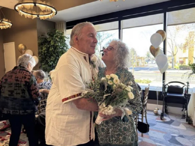 치매를 앓으며 아내를 잊었던 남성이 아내를 향한 두 번째 청혼으로 요양시설에서 특별한 결혼식을 올린 사연이 전해졌다. (사진=아이비 버클리)