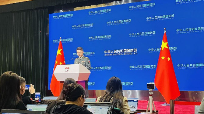장빈 중국 국방부 대변인이 29일 정례브리핑에서 발언을 하고 있다(사진=연합뉴스)