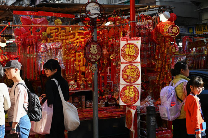지난달 26일 홍콩의 한 점포에서 명절 용품을 판매하고 있다. (사진=AFP)