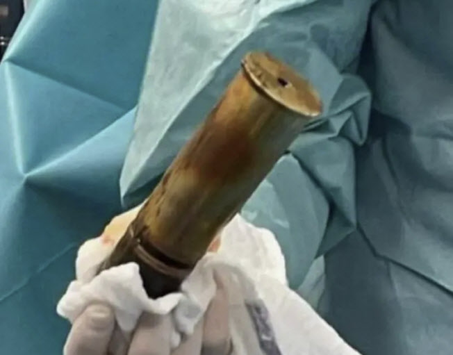 2022년 프랑스 툴롱의 쌩트 뮈스 병원에서 88세 노인의 항문에서 제1차 세계대전 포탄이 발견됐다. 크기는 길이 약 20cm, 직경 5.0cm로 파악됐다. 이번에 20대가 항문에 삽입한 포탄은 이것보다 조금 작다. (사진=X 엣 트위터)