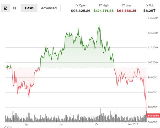 시장에서는 7만달러가 핵심 심리적 지지선으로 인식돼 왔지만, 이 선이 붕괴되자 자금 이탈 속도가 눈에 띄게 빨라졌다는 평가가 나온다. 가상자산 투자전문기업 코인쉐어스의 리서치 책임자 제임스 버터필은 “7만달러는 심리적으로 중요한 수준”이라며 “이를 지켜내지 못할 경우 6만~6만5000달러 구간으로의 추가 하락 가능성이 상당히 높다”고 말했다.