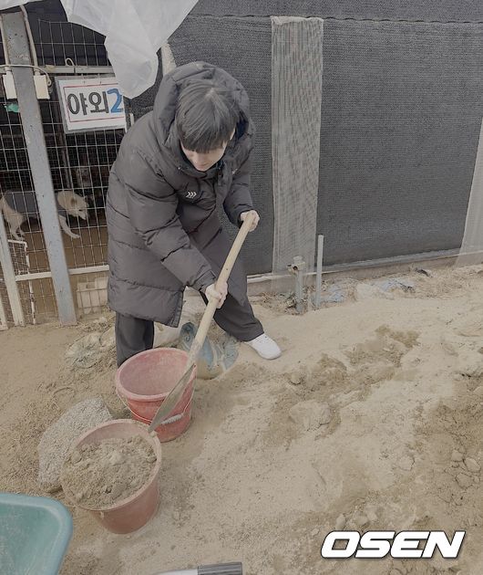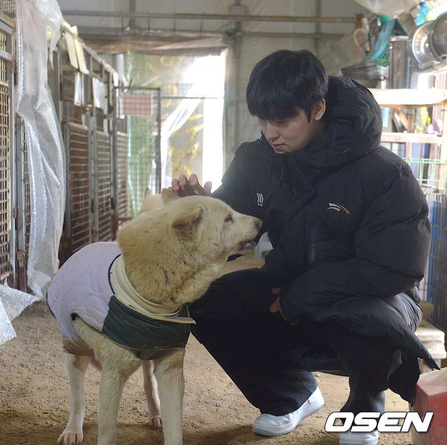 김건우는 점심도 거른채 ‘행동하는 동물사랑’ 유기견 보호소를 찾아가 해가 질 때까지 봉사활동에 집중했다. 체감 온도가 영하 15도를 넘는 추운 날씨에도 사료 배급과 견사 청소, 유기견 산책 등을 묵묵하게 임했다.