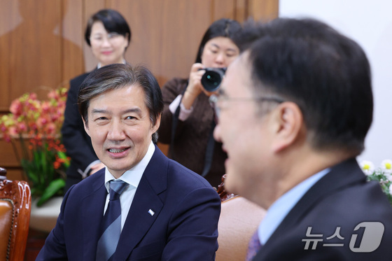 조국 조국혁신당 대표가 25일 서울 여의도 국회에서 우원식 국회의장을 예방하고 있다. 2025.11.25/뉴스1 © News1 신웅수 기자