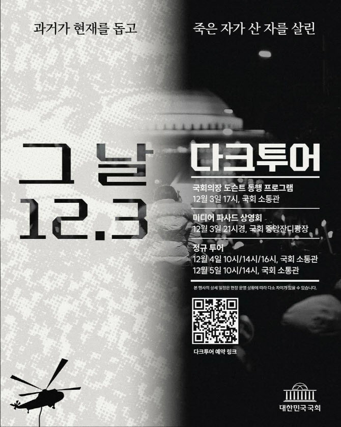 국회사무처는 비상계엄 해제 1주년을 맞아 ‘그 날 12.3 다크투어’를 12월 3~5일까지 개최한다고 26일 밝혔다.