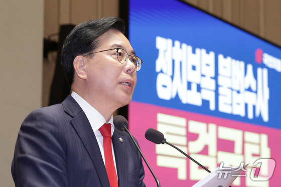 그는 "지금 내란 몰이의 일상화가 진행되고 있다. 어제 법제사법위원회 소위에서 민주당이 일방적으로 내란전담재판부와 법왜곡죄를 통과시켰다"며 "여기에 3대 특검이 끝나더라도 종합 특검을 또다시 추진하겠다는 발표까지 했다"고 했다.