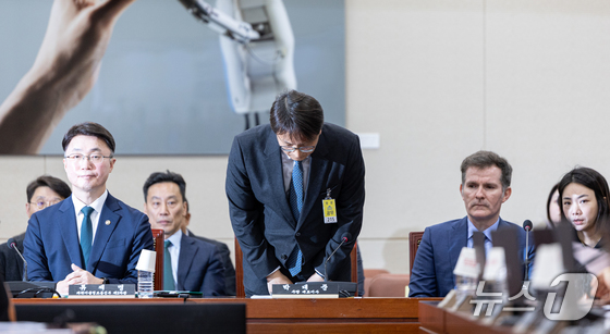 박대준 쿠팡 대표이사가 2일 서울 여의도 국회에서 열린 제429회국회(정기회) 과학기술정보방송통신위원회 제18차 전체회의에 출석해 고개 숙여 인사하고 있다. 2025.12.2/뉴스1 © News1 이승배 기자
