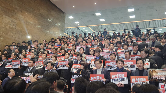 민주당이 과반을 넘는 다수당이라고 하지만 국민의힘에서 이탈표가 나오지 않으면 탄핵소추안은 국회를 넘을 수 없다.