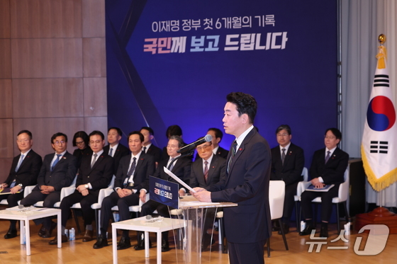 강 비서실장은 "지난 6개월의 여정은 정상화와 함께 국정 운영 전반을 일대 쇄신하는 과정이었다"며 대통령 1호 지시사항인 비상경제점검TF 설치로 민생회생 추경 집행, 코스피 4000 현실화, 사상 최초 연간 수출 7000억 달러 돌파 가시권, 인공지능 대전환 핵심자원인 GPU 26만 장 확보, APEC 등 다자외교 및 정상외교 정상화, 미국과의 관세협상 타결, 핵추진잠수함 건조 등 성과를 소개했다.