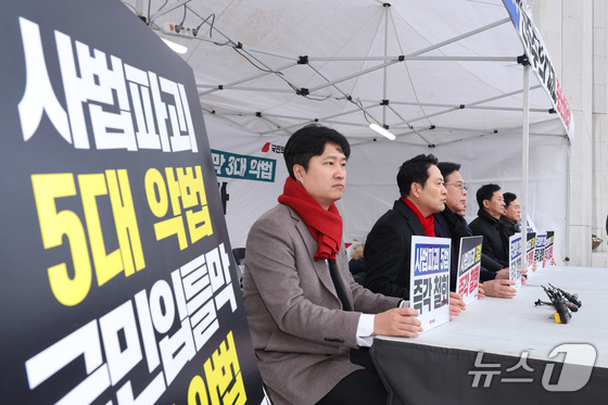 송언석 원내대표도 천막 농성장에서 “국민의힘 국회의원 107명 전원은 오늘부터 8대 악법 총력 저지 투쟁에 돌입한다”고 밝혔다.