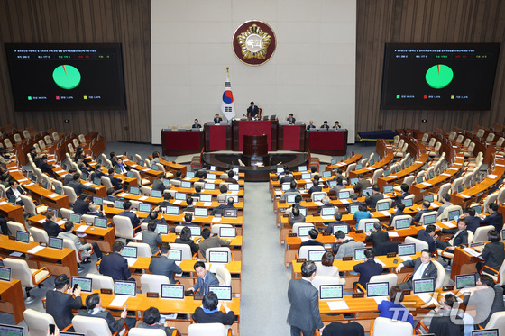 24일 서울 여의도 국회에서 열린 제430회국회(임시회) 제2차 본회의에서 정보통신망 이용촉진 및 정보보호 등에 관한 법률 일부개정법률안(대안)이 가결되고 있다. 2025.12.24/뉴스1 © News1 신웅수 기자
