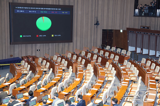 민주당과 조국개혁신당 등 범여권은 이날 본회의에서 필리버스터(무제한 토론)을 강제 종료 시킨 뒤 정보통신망법 개정안을 표결 처리했다.