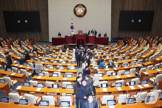 24일 서울 여의도 국회에서 열린 제430회국회(임시회) 제2차 본회의가 산회된 후 더불어민주당 의원들이 본회의장을 나서고 있다. 2025.12.24/뉴스1 © News1 신웅수 기자