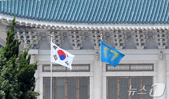 대통령 집무실이 청와대로 공식 이전함에 따라 오는 29일부터 봉황기가 청와대에 게양된다. 대통령실은 24일 언론 공지를 통해 "봉황기가 29일 0시 용산 대통령실에서 하기됨과 동시에 청와대에 게양된다"고 밝혔다. 대통령실 공식 명칭도 봉황기 게양에 맞춰 청와대로 변경된다. 사진은 지난 2017년 6월9일 청와대에 걸린 봉황기 모습. (뉴스1 DB) 2025.12.24/뉴스1 © News1 김진환 기자