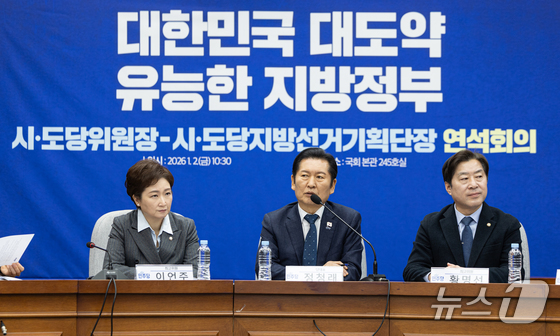정청래 더불어민주당 대표가 지난 2일 서울 여의도 국회에서 열린 시도당위원장 및 시도당지방선거기획단장 연석회의에서 모두발언하고 있다. 2026.1.2/뉴스1 © News1 이승배 기자