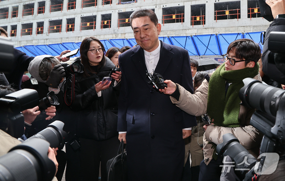 김병기 더불어민주당 전 원내대표가 12일 서울 여의도 민주당사에서 열리는 윤리심판원 회의에 출석하고 있다. 민주당 윤리심판원은 이날 김병기 전 원내대표의 ‘공천 헌금’ 의혹과 관련해 제명 등 징계를 논의한다. 2026.1.12/뉴스1 © News1 김도우 기자