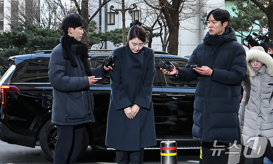 공천헌금 1억원을 수수한 혐의를 받는 강선우 무소속 의원이 20일 서울 마포구 서울경찰청 광역수사단 공공범죄수사대에 조사를 받기 위해 출석하며 고개숙여 인사하고 있다. 2026.1.20/뉴스1 © News1 김도우 기자