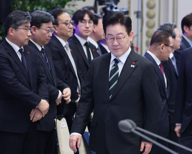 이재명 대통령이 21일 청와대 영빈관에서 열린 신년기자회견에 입장하고 있다.(사진=연합뉴스)