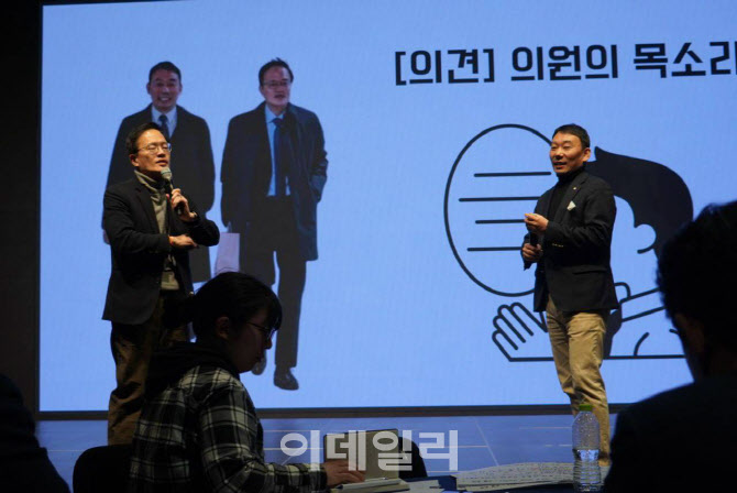 박주민(좌측) 의원이 김용민 의원과 함께 ‘말하는 대로 2026 중구난방’ 시민 참여 토론회에 참석해 발언하고 있다(사진=박주민 페이스북)