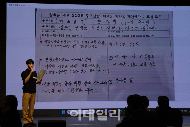 ‘말하는 대로 2026 중구난방’ 시민 참여 토론회에서 한 참석자가 발표를 하고 있다(사진=박주민 페이스북)