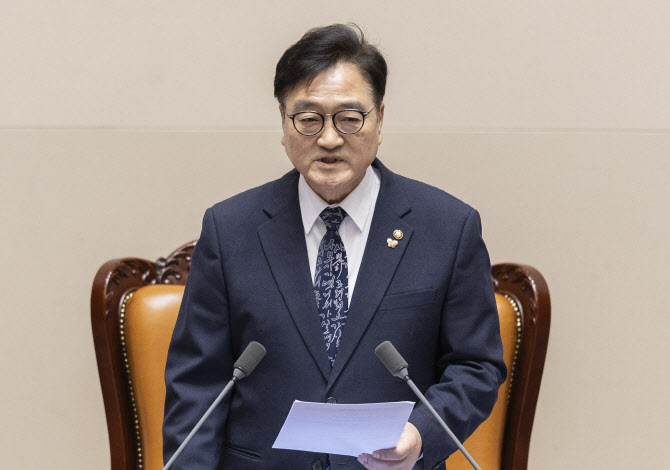 우원식 국회의장이 지난달 24일 국회에서 열린 12월 임시국회 본회의에서 허위조작근절을 위한 정보통신망법 개정안을 가결 처리한 뒤 국회의 무제한 토론 방식과 의장단의 본회의 사회권에 대한 개선 필요성을 강조하는 발언을 하고 있다. (사진=연합뉴스)