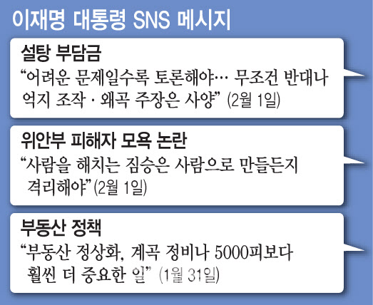 설탕 부담금과 관련해 대통령은 어려운 문제일수록 토론이 필요하다고 강조했다. 다만 자신이 언급한 설탕부담금을 ‘설탕세’로 공격하는 이들에 대해선 날 선 반응을 보였다. 대통령은 “정치적 이득을 얻어보겠다고 나라의 미래와 정의로운 건강보험료 분담을 외면한 채, 상대를 증세 프레임에 가두려는 무조건 반대나 억지 조작·왜곡 주장은 사양한다”고 지적했다.