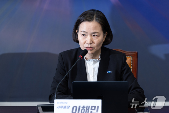 이해민 조국혁신당 사무총장이 1일 서울 여의도 국회에서 더불어민주당의 합당 제안 등과 관련 현안 기자간담회를 하고 있다. 2026.2.1/뉴스1 © News1 이승배 기자
