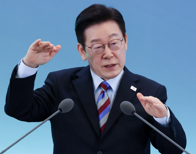이재명 대통령이 6일 창원 성산구 창원컨벤션센터에서 열린 ‘경남의 마음을 듣다’ 타운홀미팅 간담회에서 발언하고 있다 (사진=연합뉴스)