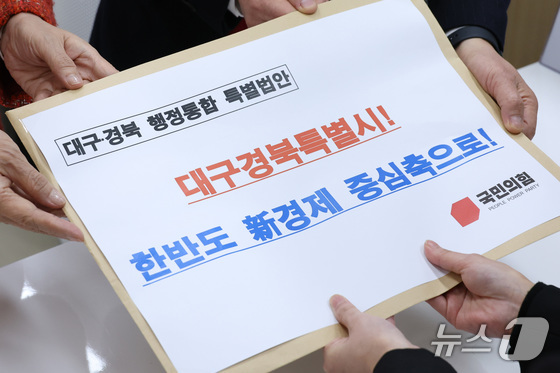 이인선, 구자근 국민의힘 의원이 30일 서울 여의도 국회 의안과에 대구경북 행정통합 특별법안을 제출하고 있다. 2026.1.30 © 뉴스1 신웅수 기자