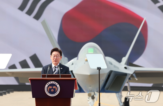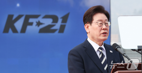 이 대통령은 이날 오후 경상남도 사천시에서 열린 KF-21 양산 1호기 출고식에 참석해 이같이 말했다.