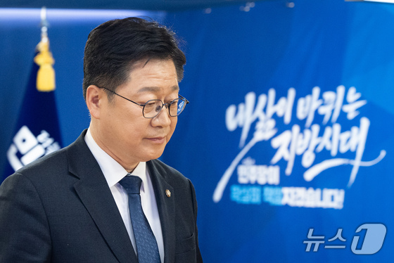 안호영 더불어민주당 전북특별자치도지사 예비후보가 7일 서울 여의도 중앙당사에서 열린 본경선 합동연설회에서 기념 촬영 후 자리로 이동하고 있다. 2026.4.7 © 뉴스1 유승관 기자