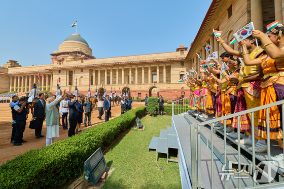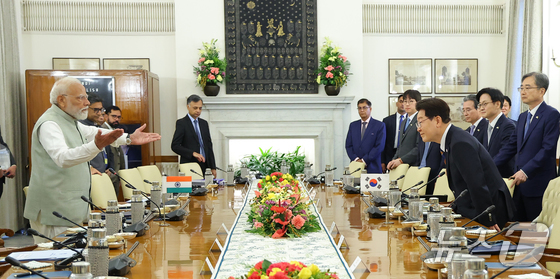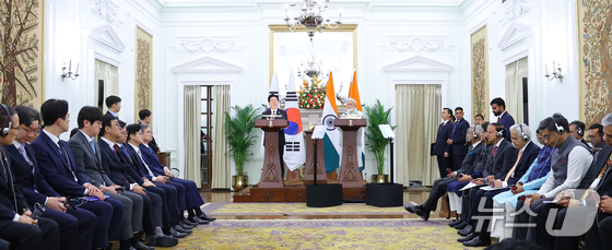 이 대통령은 "(한-인도는) 기존 경제 협력을 더욱 고도화하는 한편, 조선·금융·인공지능(AI)·국방·방산을 비롯한 전략 산업 분야에서의 협력을 확대하고, 문화와 인적 교류도 한층 강화해 나가기로 했다"며 "양국 간 경제협력의 틀을 고도화해 동반성장의 새로운 동력을 창출하기로 했다"고 말했다.
