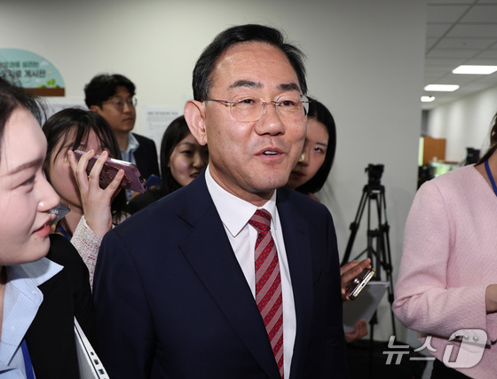 6.3 지방선거 국민의힘 대구시장 경선에서 컷오프(공천 배제)된 주호영 국회부의장이 8일 서울 여의도 국회에서 컷오프 관련 기자회견을 마친 후 취재진의 질의에 답변하고 있다. 2026.4.8 © 뉴스1 신웅수 기자