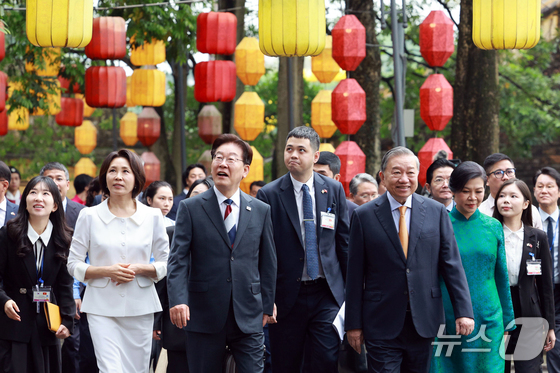 베트남을 국빈 방문 중인 이재명 대통령과 김혜경 여사는 24일(현지시간) 또 럼 베트남 공산당 서기장 겸 국가주석 부부와 마지막 공식일정으로 친교의 시간을 가졌다.