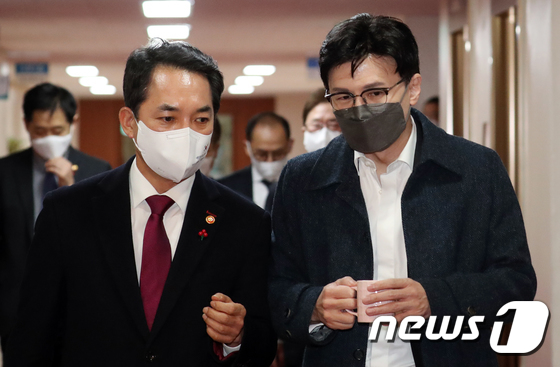 한동훈 전 국민의힘 대표와 박민식 전 국가보훈부 장관. 2023.1.17 © 뉴스1 김명섭 기자