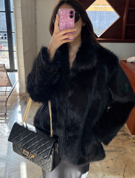 서하얀은 긴 머리카락을 넘기지 않고 그대로 늘어뜨린 채 블랙 선글라스를 끼고 웃음기 없는 모습으로 시니컬한 사진을 찍었다. 최근 해외에서 퍼 외투가 다시 유행을 하는데, 서하얀 또한 블랙 퍼 외투에 로고가 없는 C 브랜드의 가방을 멘 채 고급스러운 분위기를 연출했다.