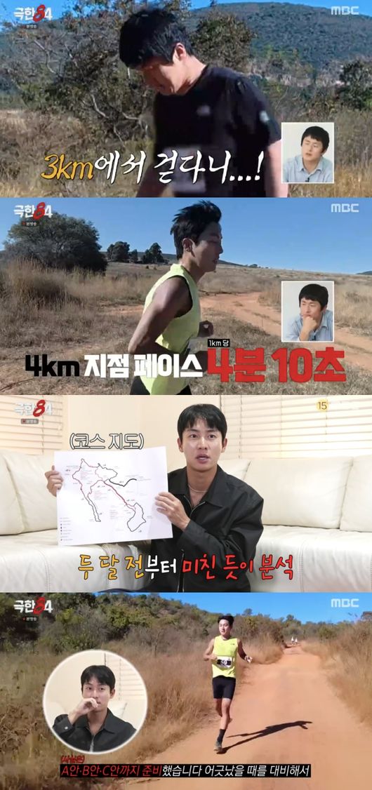 이어 “제 평균 페이스보다 5초 느리게 뛸 거다. 후반전 도모하기 위해서 에너지 준비했다. 길도 진흙, 뻘, 모래, 자갈도 건너 가야하고 쉽지 않다. 고도가 높다. 1,000m가 넘으면 한국 사람들은 심박수가 올라가서 숨 쉬기 힘들다”라며 오르막 러닝 코스를 찾아 모의 훈련을 했다고 전했다.